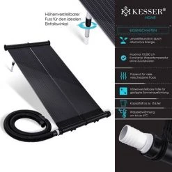 Ce chauffe-piscine à économie d’énergie réchauffera efficacement l’eau de votre piscine grâce à l’énergie solaire et prolongera donc votre saison de baignade. Pas de gaz ou d’électricité requis. Fabriqué en HDPE, le chauffe-piscine est robuste pour un service à long terme. Les pieds en aluminium sont réglables, vous pouvez donc facilement orienter le chauffage vers le soleil. De plus, vous pouvez également augmenter l’efficacité de chauffage en connectant plusieurs appareils de chauffage ensemble. La livraison inclut 1 chauffage de piscine, 1 tuyau, 2 raccords, 2 colliers de serrage et 2 anneaux en caoutchouc.