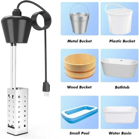 Large application : le thermoplongeur électrique peut être utilisé dans l’eau, les chauffe-piscines pour les piscines hors sol adaptées aux seaux, bassins, baignoires, mini piscines gonflables, etc.