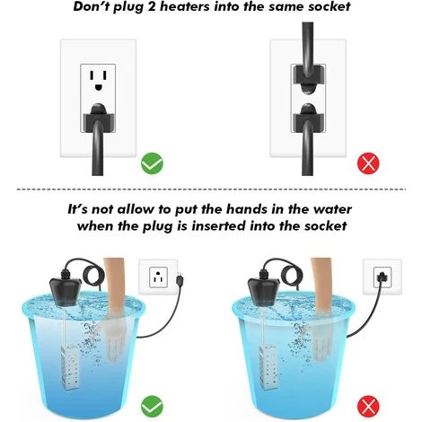 Matériau de haute qualité : le thermoplongeur est livré avec une protection en acier inoxydable 304 de qualité supérieure pour empêcher l’élément chauffant d’entrer en contact direct avec des personnes ou des animaux. La chaleur se dissipe plus rapidement dans l’eau en s’écoulant à travers les trous de la protection.