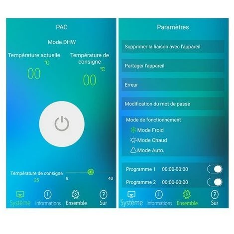 Ce boitier est branché sur le panneau de contrôle de votre pompe à chaleur. Il se connecte ensuite à votre réseau wifi. Il vous suffira d’une connexion internet depuis votre smartphone pour piloter votre pompe à chaleur. Vous pourrez alors gérer la température de consigne, le mode de chauffage et toutes les fonctions du panneau de contrôle.