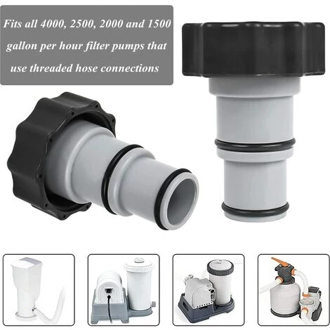【Compatible avec】Paire d’adaptateurs de la série A, 25007. Convient à toutes les pompes à filtre de 4000, 2500, 2000 et 1500 gallons par heure qui utilisent des raccords de tuyau filetés pour Intex.