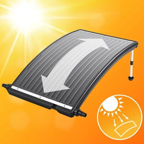 Selon les conditions météorologiques et l’orientation du panneau solaire, un réchauffement jusqu’à 3° est possible. En connectant plusieurs collecteurs solaires, l’eau peut être chauffée davantage. La conception incurvée offre une plus grande surface d’exposition au soleil. Le chauffage solaire pratique est muni de pieds en aluminium, réglables entre 26 cm et 38 cm, de sorte que le panneau solaire puisse être installé de manière optimale vers le soleil. Les pieds peuvent être retirés pour le stockage hivernal.