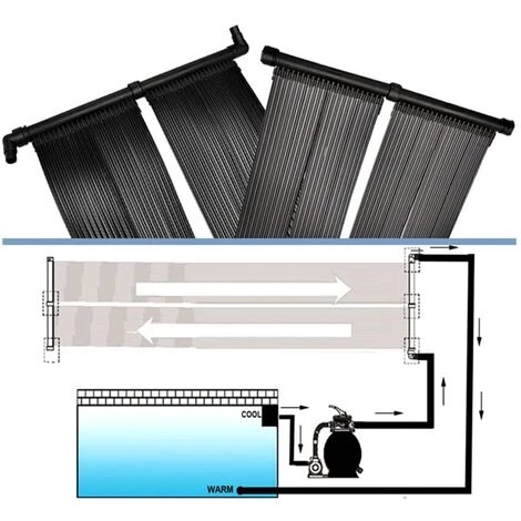 Ce chauffage de piscine solaire capte les rayons du soleil, les convertit en chaleur et garde votre piscine confortablement chaude. Il augmente la température de l’eau de la piscine jusqu’à 10 degrés. Avec l’installation de ce chauffage, l’eau de la piscine circule dans des canaux solaires et retourne dans votre piscine bien chaude. Il est compatible avec la plupart des pompes de piscine. Il peut être monté sur un toit/support ou simplement posé sur le sol près de la piscine.